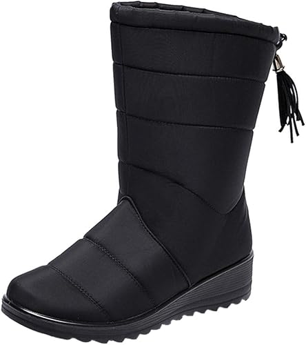 Mid Calf Boots Women Winter Snow Boots Plush Lined Warm Ankle Booties Waterproof Walking Shoes Non- Slip Rain Boots with Tassel