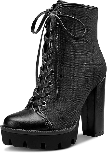 Women's Black Lace up Goth Platform Boots, Chunky Block Ankle Gothic Combat Boots, Cosplay Fashion Punk Boots Shoes