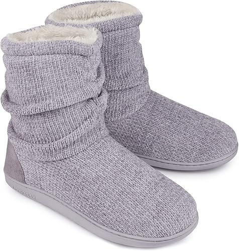 Women's Chenille Knit Bootie Slippers Cute Warm Plush Fleece Memory Foam House Shoes