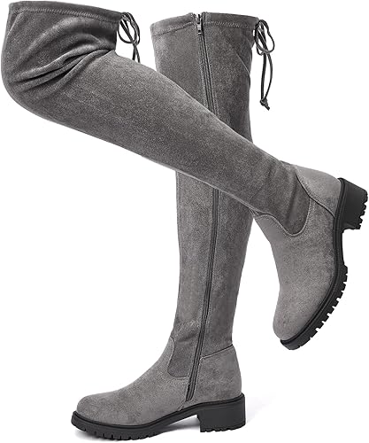 Women's Suede Over The Knee Boots Round Toe Side Zipper Flat Booties Thigh High Boots