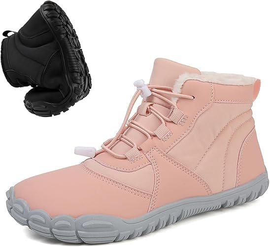 Womens Barefoot Snow Boots Warm Plus Lining Ankle Boots Winter Boots Wide Toe Box Outdoor Ankle Booties Minimalist Zero Drop