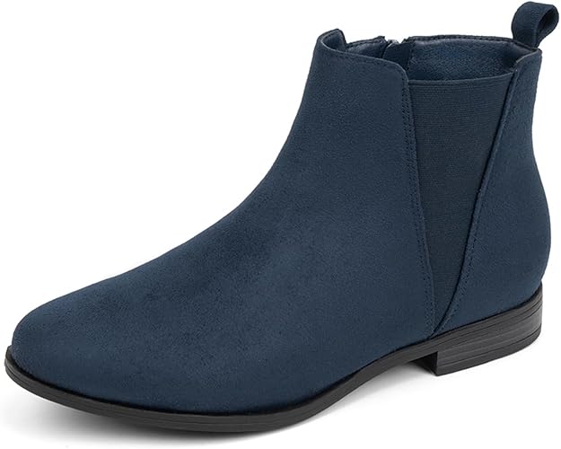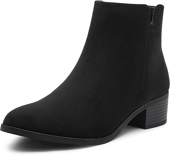 Women's Chelsea Ankle Boots Low Heel Fashion Almond Toe Dress Booties with Side Zipper
