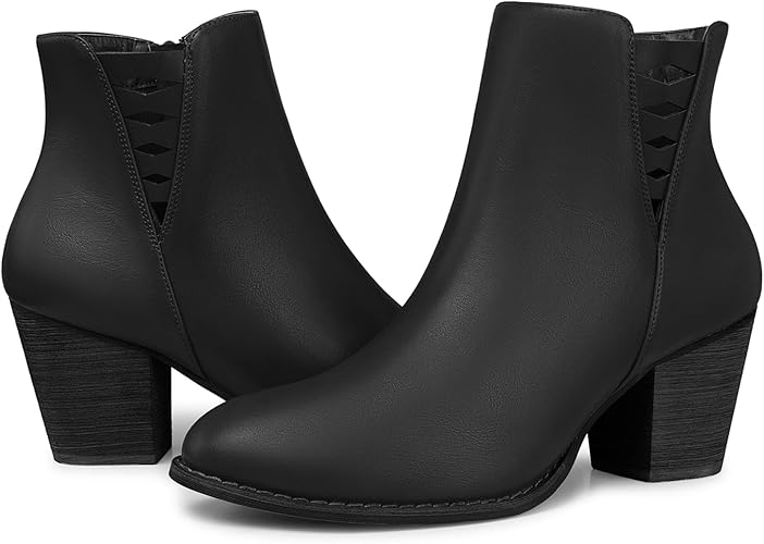 Women's Low Chunky Heel Leather Ankle Boots with Side Zipper Fall Winter Fashion 2024 Short Booties Dress Shoes