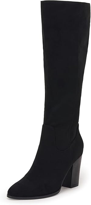 Womens Faux Suede Knee High Boots Side Zipper Chunky Heel Stretch Winter Boots